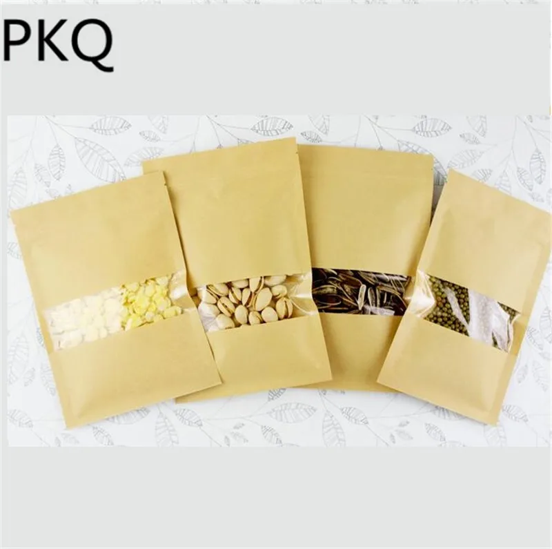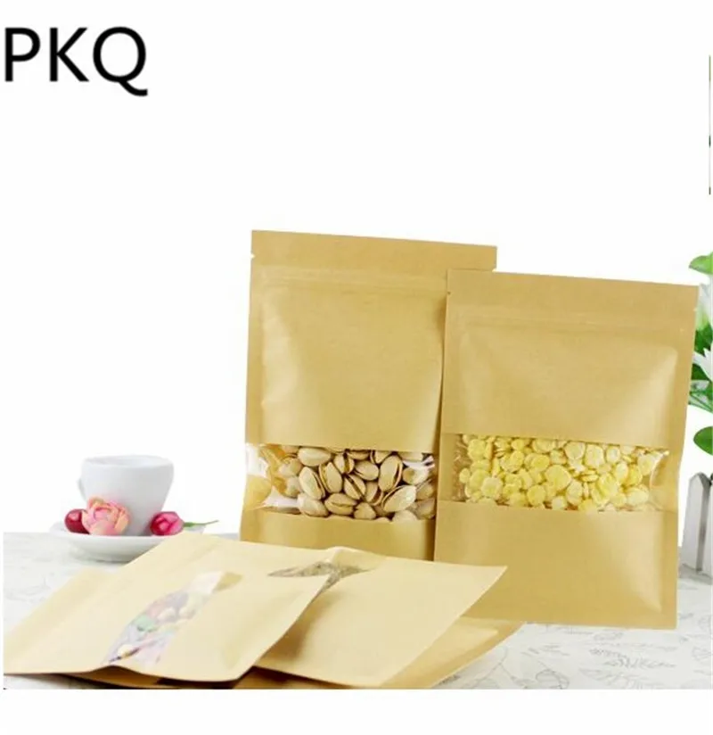 5pcs 20*30cm Large Food Storage Bag Kraft Paper Zip Lock Bag With Window Party Favor Packaging Bag