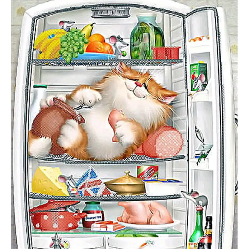 GLymg Diy Diamond Painting Cartoon Cat Food Refrigerator Diamond Embroidery All Craft Accessories T