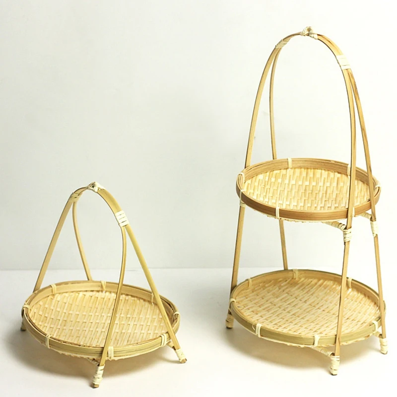 Bamboo Weaving Straw Baskets Tier Rack Wicker Fruit Bread Food Storage Kitchen Decorate Round Plate