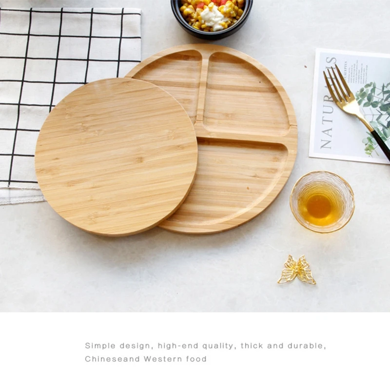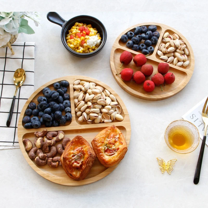 Bamboo Round Grid Plate Three Grid Plate Western Food Round Dessert Snack Fruit Dried Fruit Plate H