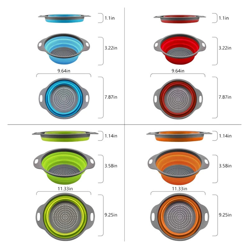 Collapsible Colander and Strainer Food-Grade Sturdy Plastic Base -Space-Save RoundSet of 4 2 PC 4