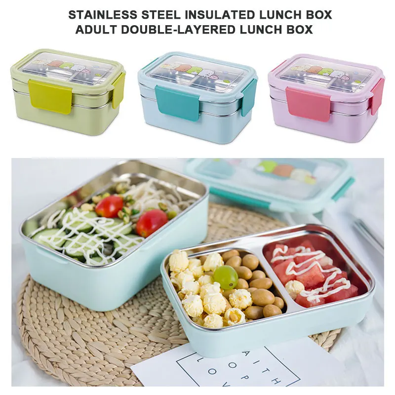 HIGH QUALITY Lunch Box Bento Box Picnics Camping Double-Layer 304 Stainless Steel Cartoon Thermal Lunch Box Food