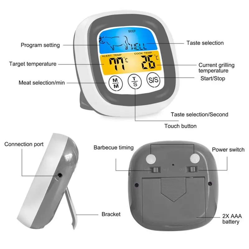 Wireless BBQ Thermometer With Food Cooking Timer For Oven Meat Grill Thermometer With Free App Cont