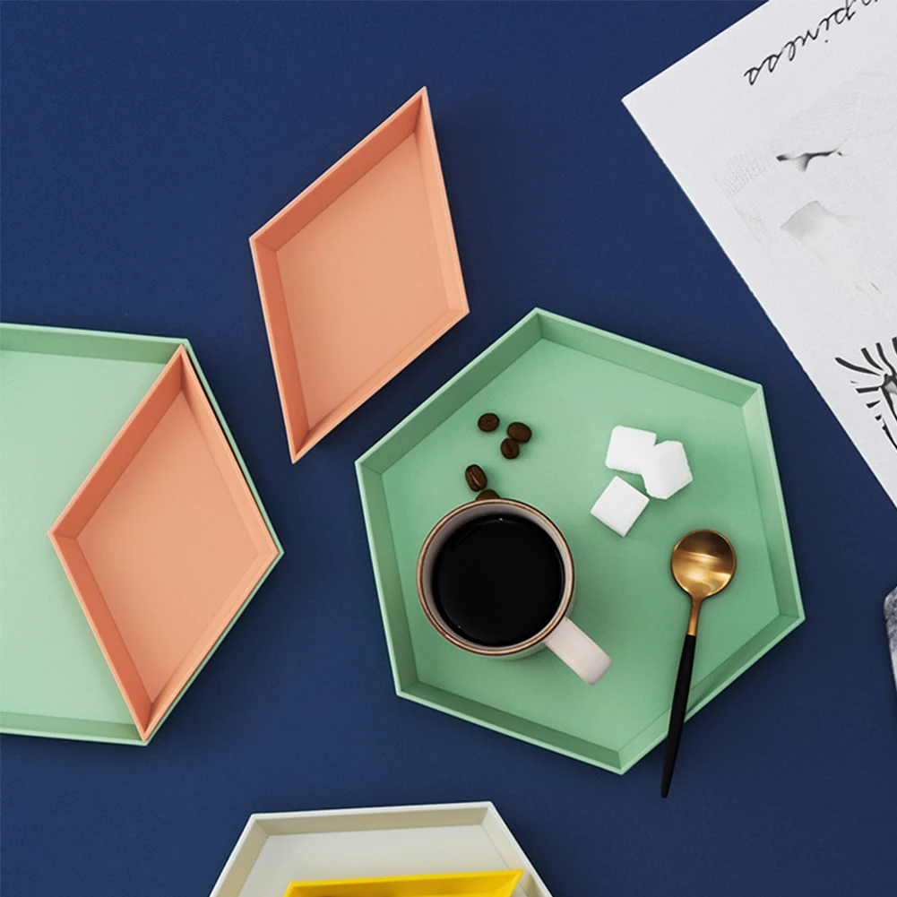 4pc Geometric Storage Tray for Fruit Cake Dessert Dish Removable Plastic Combination Desktop Snacks