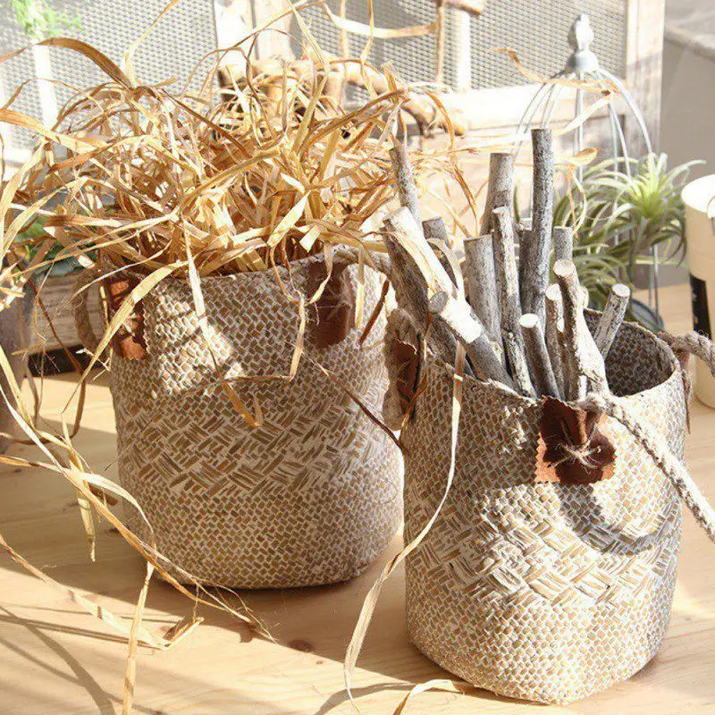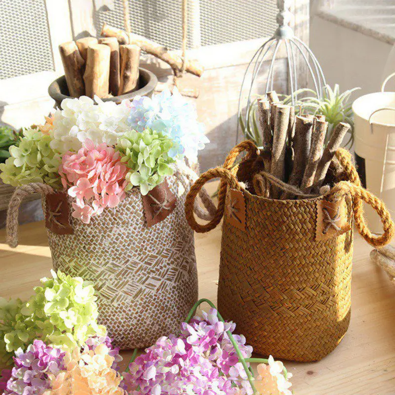 BEST Hand-Woven Seagrass Storage Basket Nordic Simple Fruit Gardening Storage Bag Box Hamper Organizer G