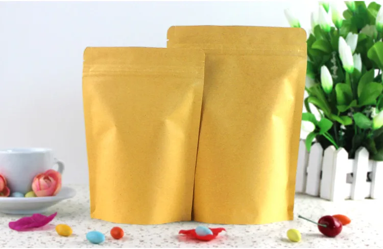 13*18.5+4cm 50pcs Stand Up Aluminum Foil Brown kraft paper bags with Zipper lock for Food/Tea/Nut R