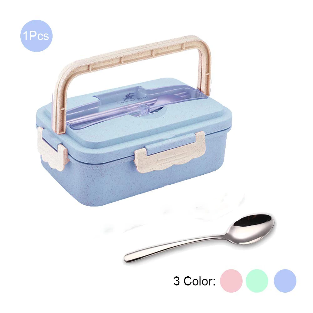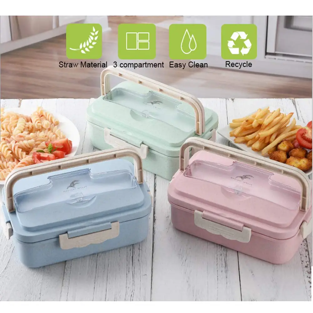 HOT Sale Healthy Material Lunch Box with Spoon 3 grid Wheat Straw Bento Boxes Microwave Dinnerware Food Stor